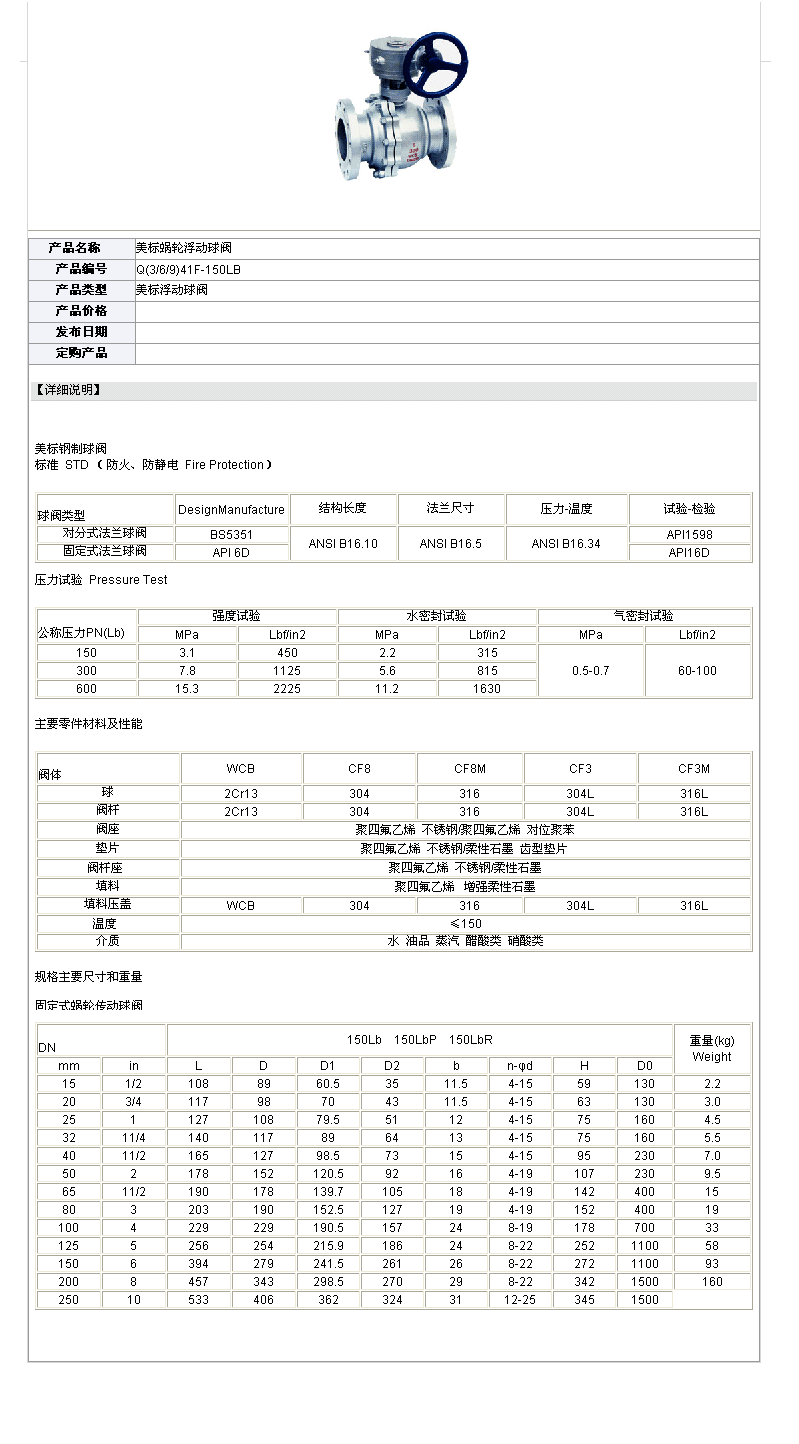 美標蝸輪浮動球閥